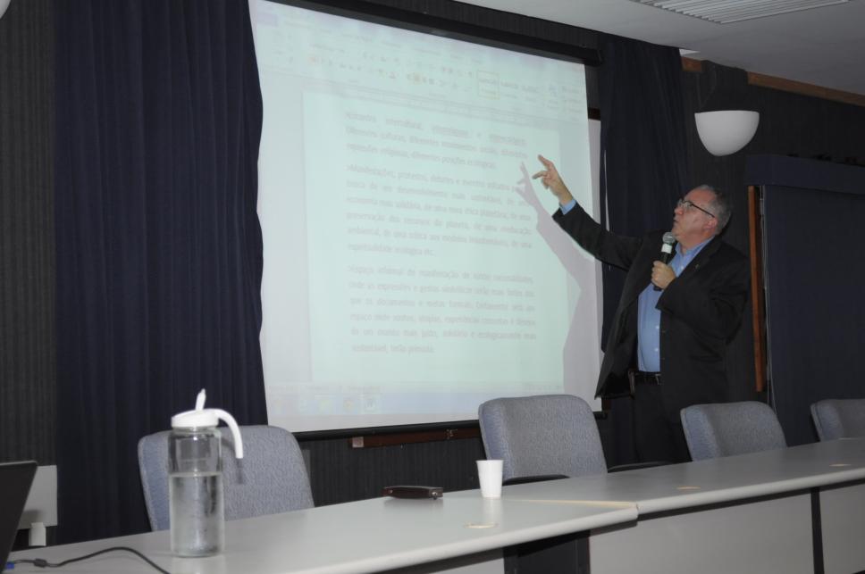 O Reitor Padre Josafá S.J. durante a palestra na mesa "Rio + 20: desafios e esperanças".