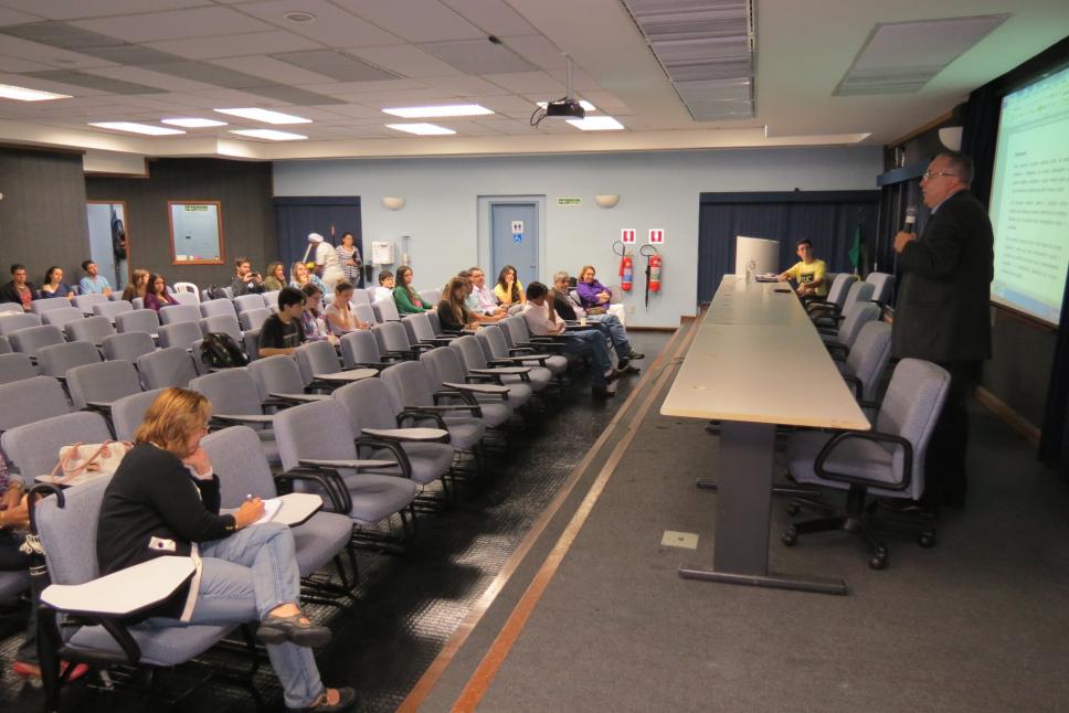 Na mesa com microfone: prof. pe. Josafá Carlos de Siqueira S.J. (BIO, Reitor); 1ª da esq. para dir.: n.i., prof. Luiz Felipe Guanaes Rego (GEO, NIMA), prof. Fernando Cavalcanti Walcacer (NIMA), n.i.