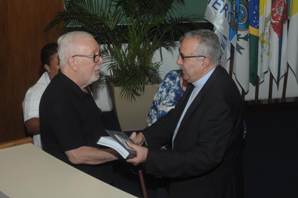 O Reitor Pe. Josafá S.J conversa com o professor Carlos Lucena.