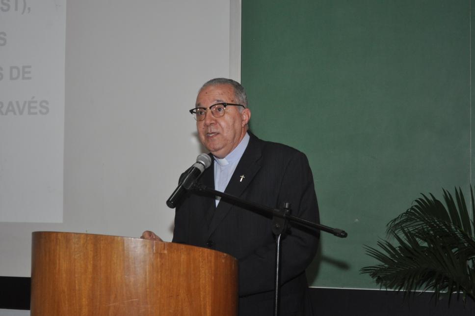 Reitor Padre Josafá S.J. durante apresentação no evento.