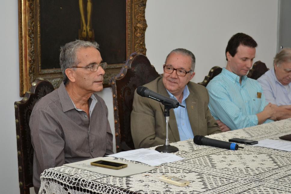 Da esq. para dir.: prof. José Eugênio Leal (IND), prof. pe. Josafá Carlos de Siqueira S.J. (BIO, Reitor), prof. Luiz Felipe Roris Rodriguez Scavarda do Carmo (IND), prof. pe. Francisco Ivern Simó S.J. (Vice-Reitor).