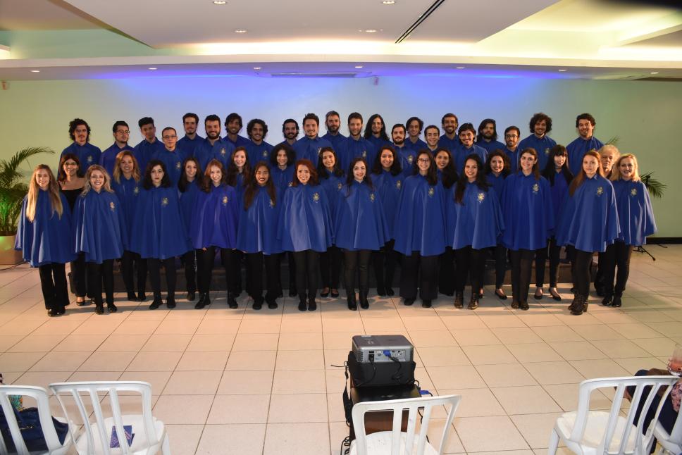 Na 2° fila da esq. para direita: 1ª - Gláucia Henriques (preparadora vocal); último - Geraldo Leão das Oliveiras Filho (maestro)
