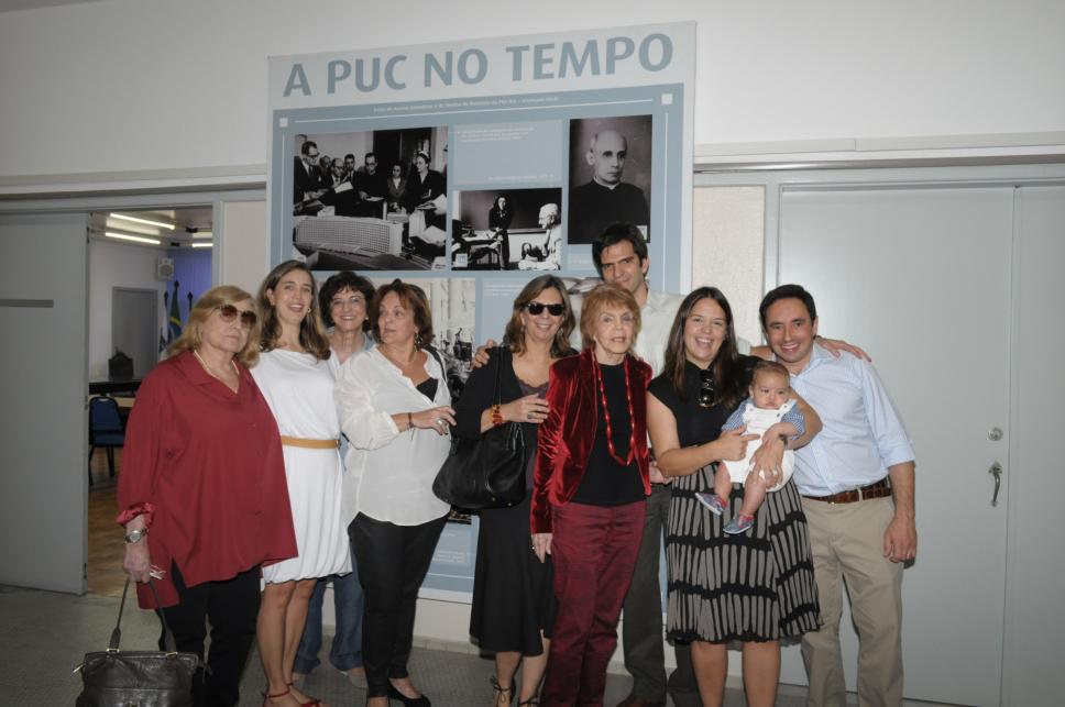 Retrato em grupo da professora Sônia Camargo com familiares e convidados.