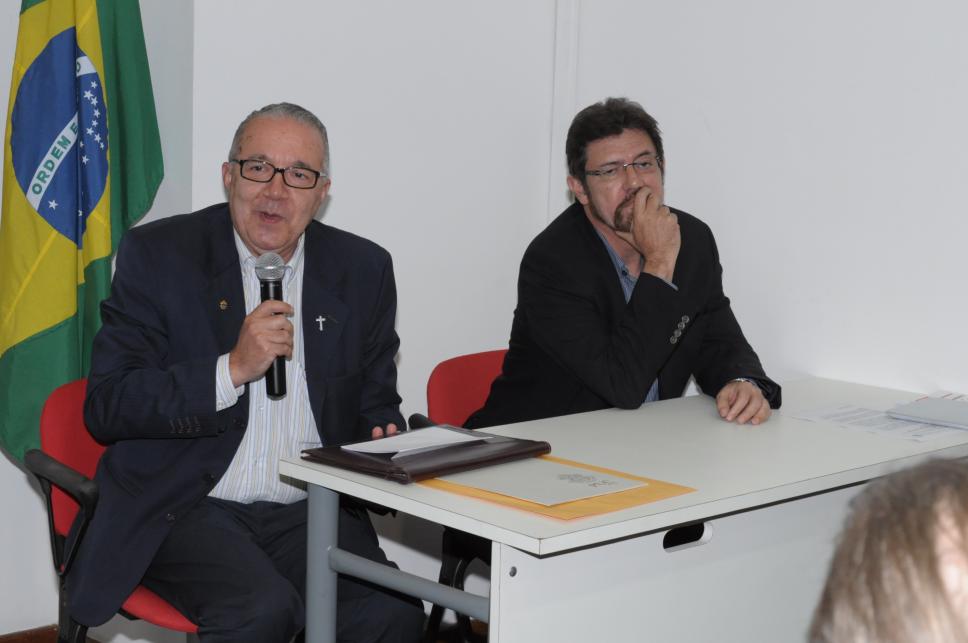 Da esq. para dir.: prof. pe. Josafá Carlos de Siqueira S.J. (BIO, Reitor), prof. Luiz Alencar Reis da Silva Mello (CETUC, Decano do CTC).