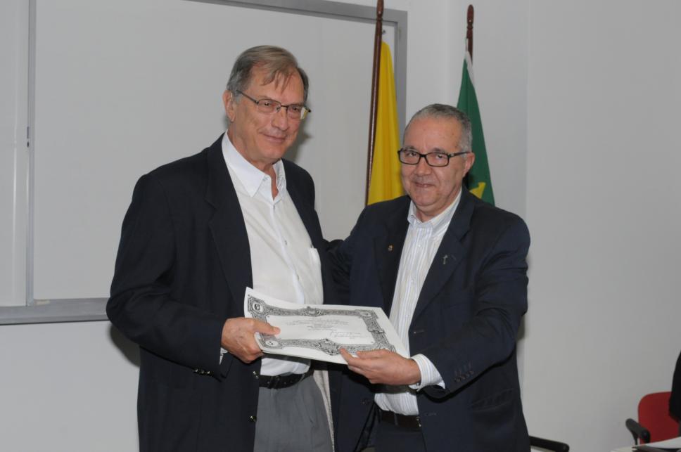 O prof. Arndt von Staa recebe o título de Professor Titular da PUC-Rio do Reitor Pe. Josafá S.J..