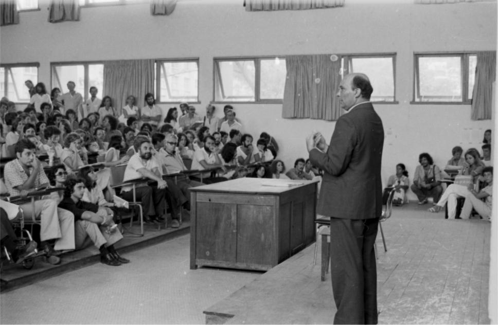 Fala do Reitor Padre Mac Dowell S.J. na assembleia sobre a demissão de professores.