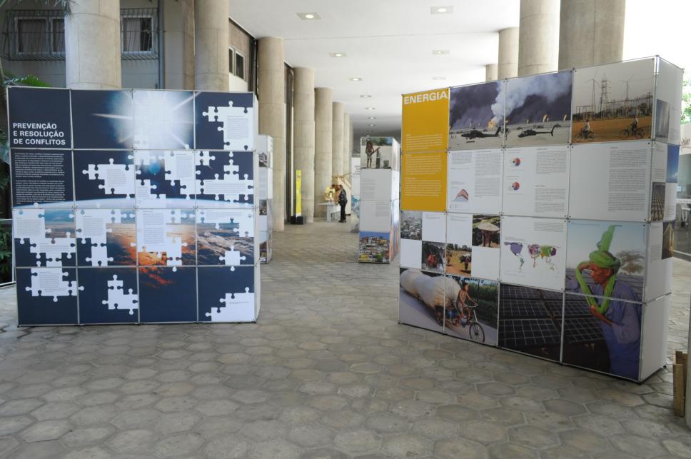 Painéis sobre meio-ambiente expostos nos pilotis.