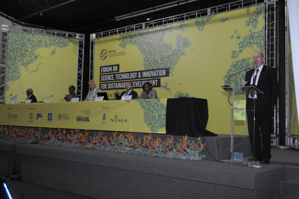Da esq. para dir.: Ram Badan Singh, Lindiwe Majele Sibanda,Thomas Rosswall, Adrian Fernández Bremauntz, Ruvimbo Mabeza‑Chimedza, Tim Benton (no púlpito).