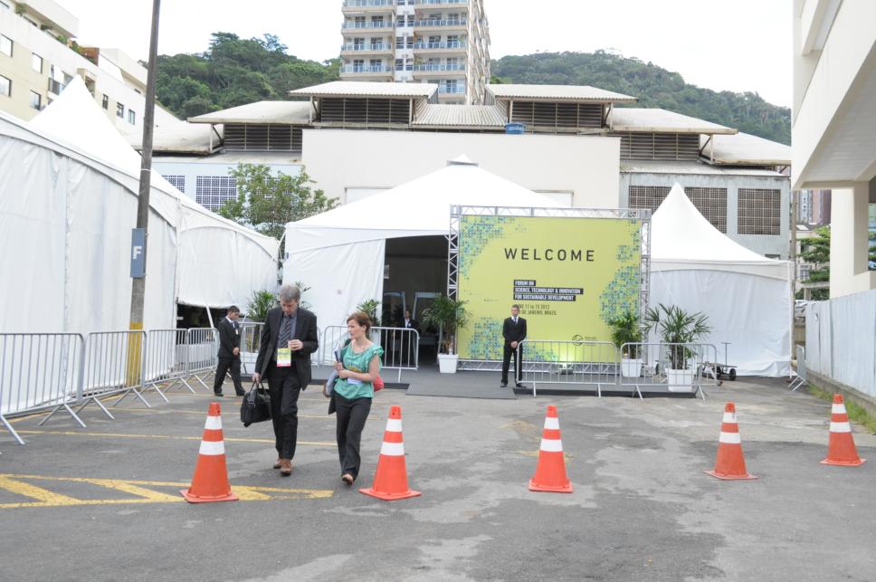 Pessoas deixando o ginásio após palestra.