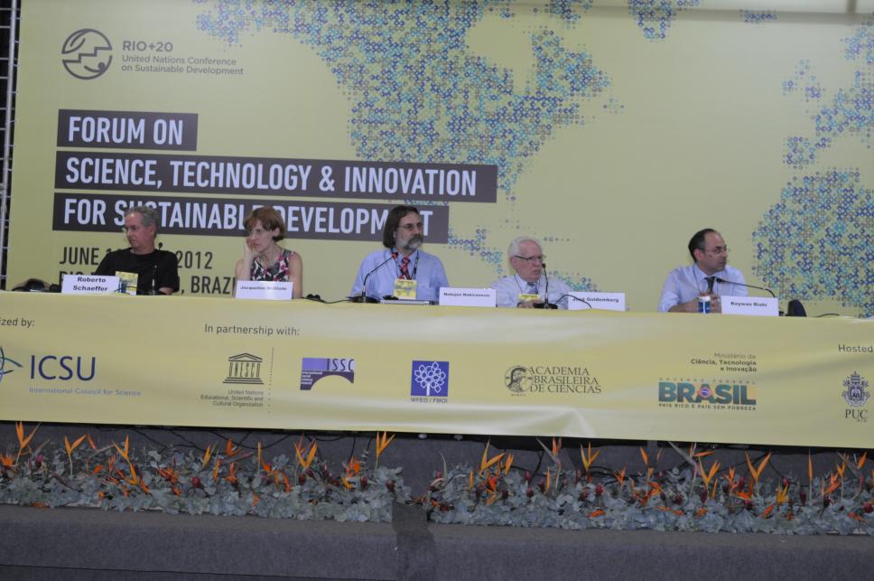 Da esq. para dir.: Roberto Schaeffer (UFRJ), Jacqueline McGlade (European Environment Agenc), Nebojsa Nakicenovic(Vienna University of Technology), José Goldemberg (USP) e Keywan Riahi (IIASA).