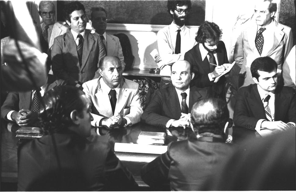 Cerimônia para assinatura do protocolo de Acerto Final com a presença de jornalistas e autoridades como o Reitor Pe. Mac Dowell S.J., o secretário-geral do Ministério da Fazenda do Estado do Rio de Janeiro, Márcio Fortes, entre outros.