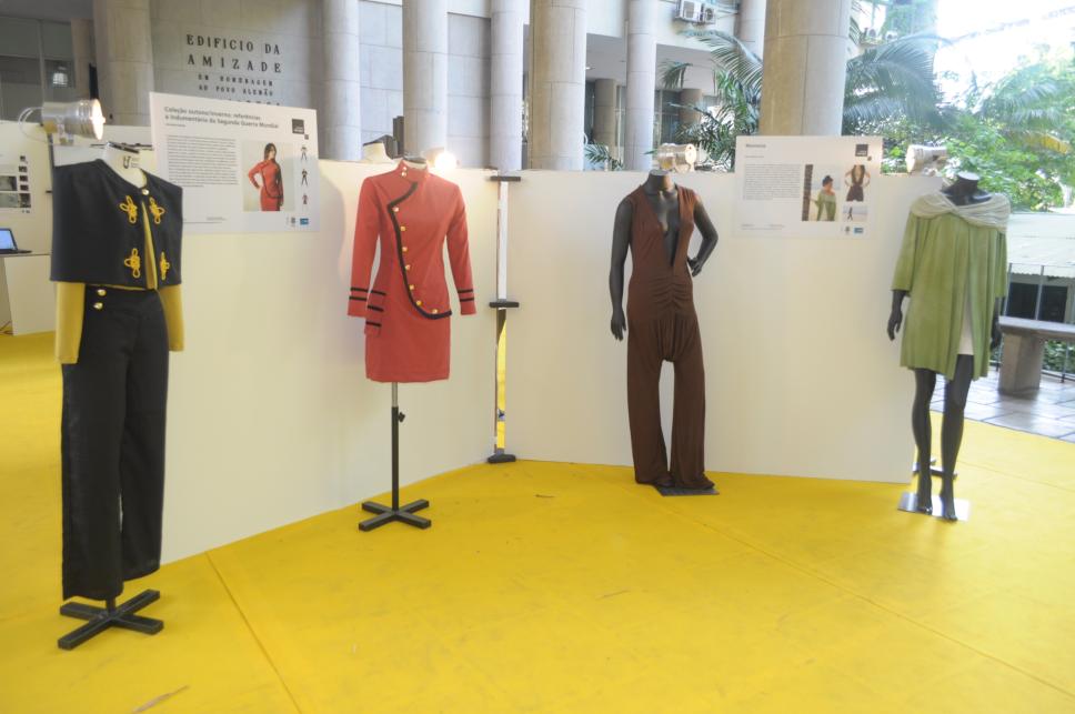 Manequins com roupas criadas pelos alunos para a Semana de Design da PUC-Rio.