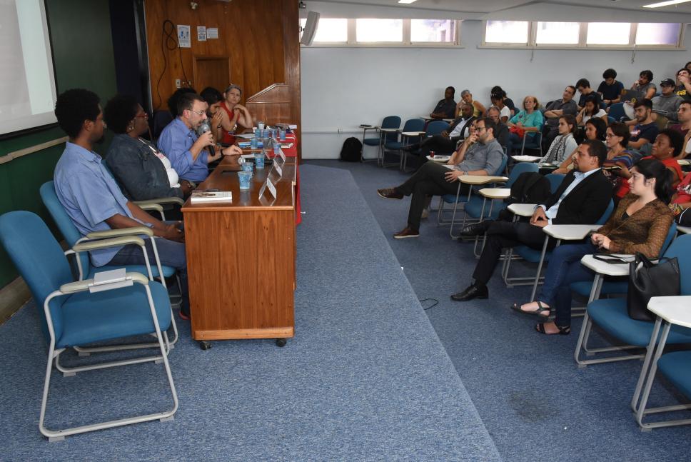 Palestrantes e plateia presente na mesa Direito, terras e moradia: movimentos sociais e solidariedade.
