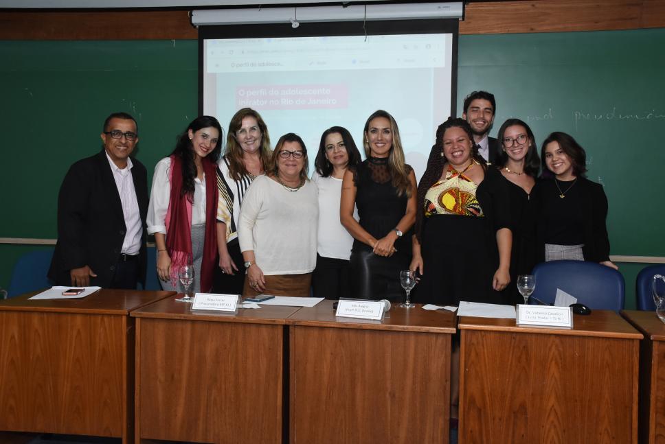 Da esq. p/ direita: 1º - prof. Cláudio Jacinto da Silva; 3ª - dra. Flávia Ferrer; 4ª: profa. Inês Alegria Rocumback; 6ª - dra. Vanessa Cavalieri; 7ª - dra. Caroline Bispo.