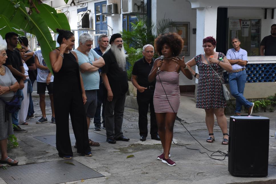 Aluna discursa na homenagem.