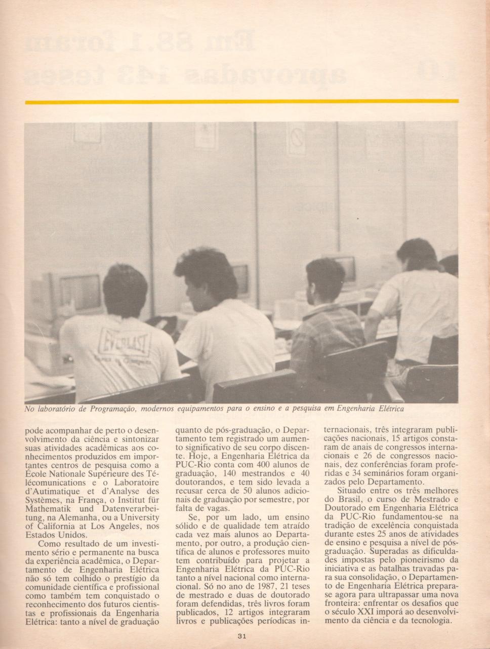 Artigo da Revista PUC CIÊNCIA referente aos meses de Outubro, Novembro e Dezembro, sobre os vinte e cinco anos do mestrado em engenharia elétrica: o primeiro da Universidade.