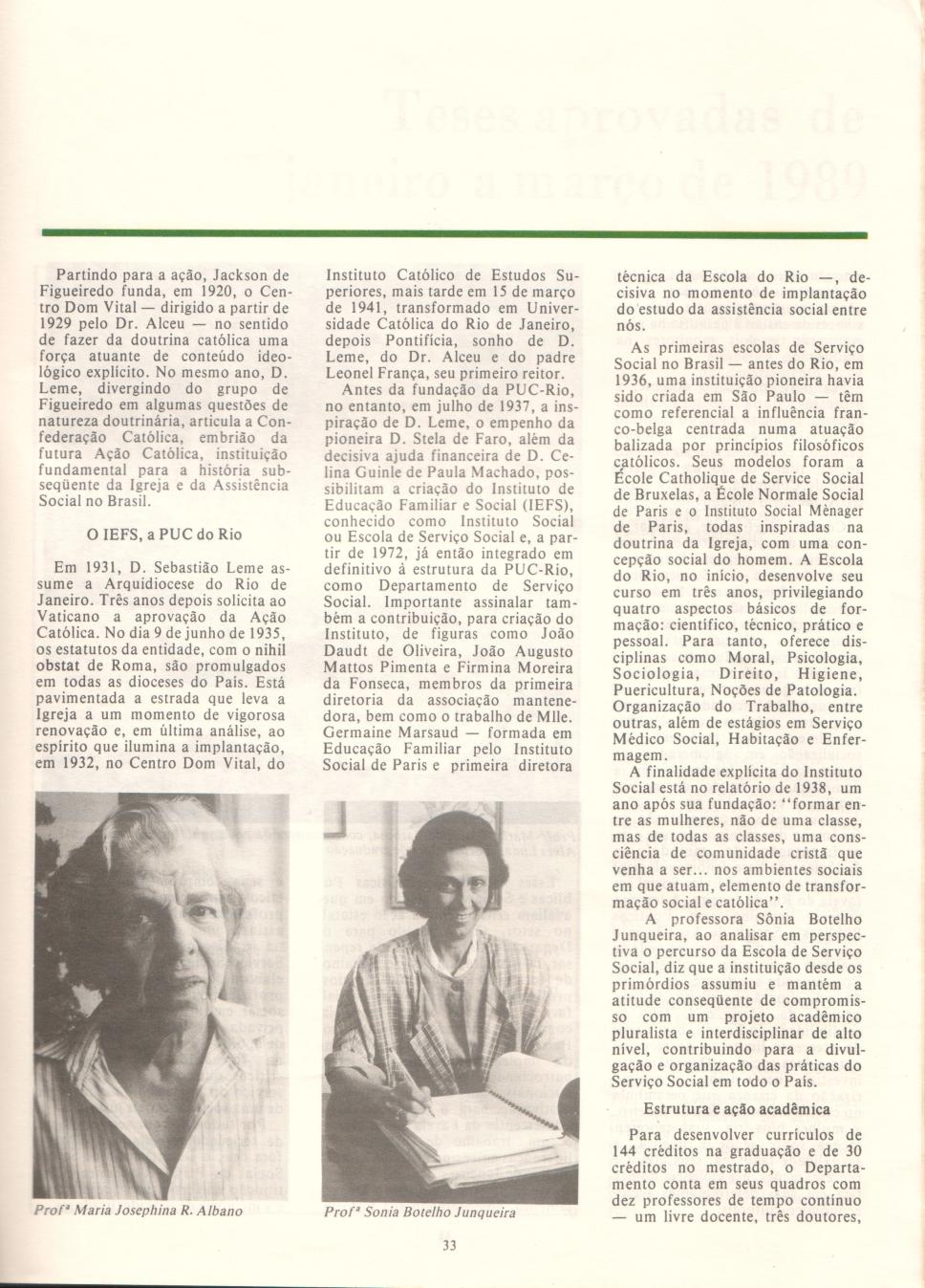 Serviço Social: meio século de excelência (cont.)- O IEFS, a puc do Rio- Estrutura e ação acadêmica