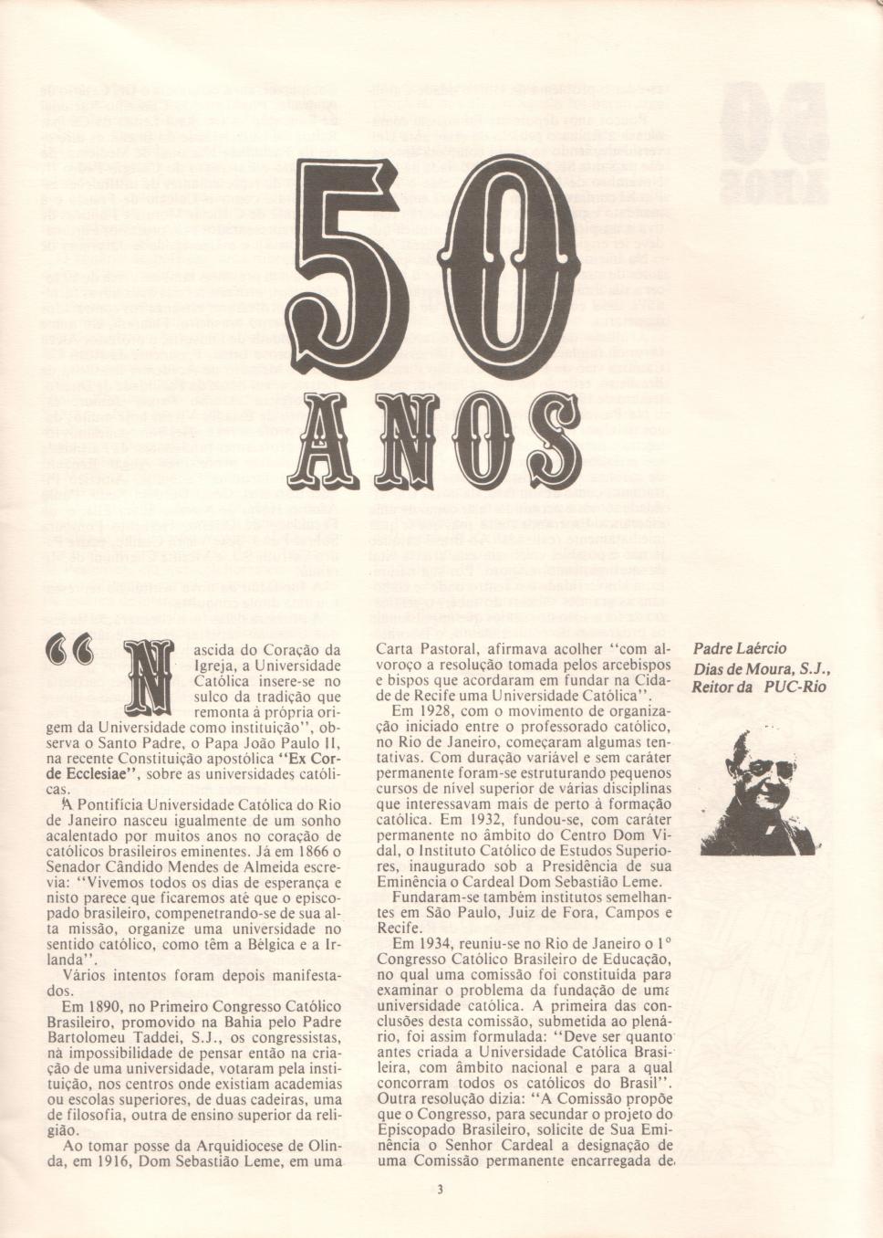 Artigo da quinta edição da revista PUC CIÊNCIA sobre os cinquenta anos de existencia da PUC-Rio, contando sua trajetória e o contexto que a precedeu e na qual foi fundada.