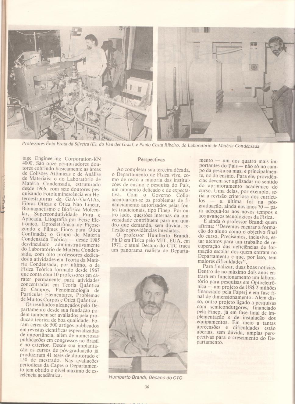 Continuação do artigo da revista PUC CIÊNCIA número cinco, sobre o Departamendo de Física, na época, um dos quatro mais importantes do país e marcado pelo seu pioneirismo.