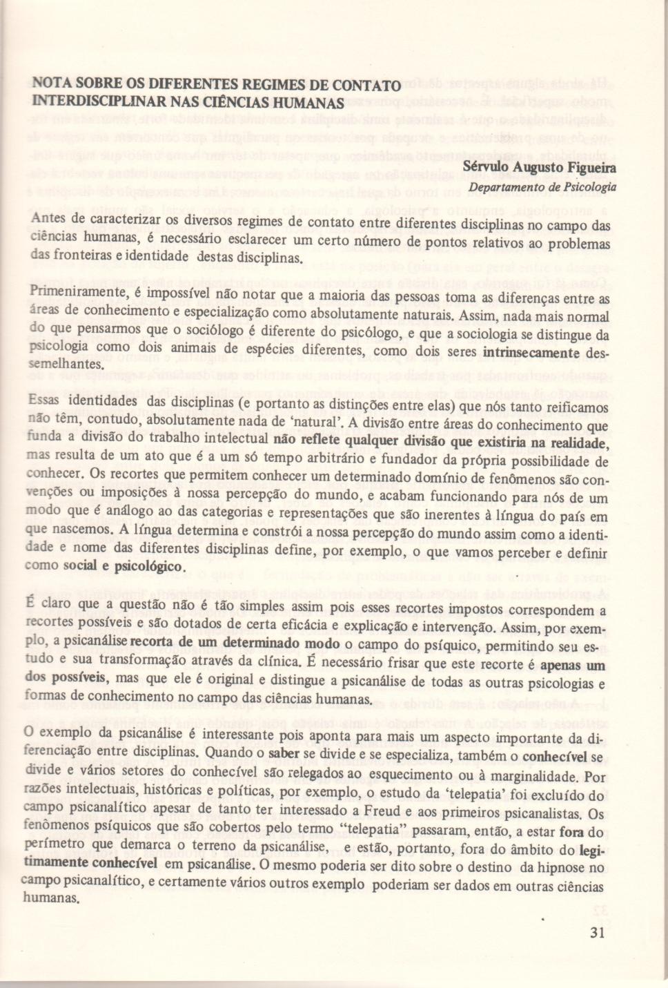 Texto do professor Sérvulo Augusto Figueira do Departamento de Psicologia sobre a interdisciplinalidade das ciências humanas, tomando como exemplo a psicologia e a sociologia.