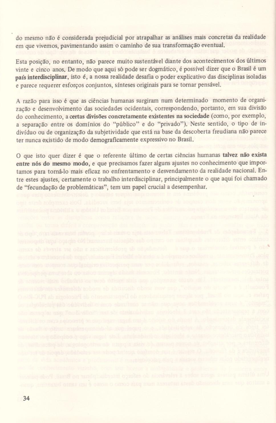 Notas sobres os diferentes regimes de contatos interdisciplinar nas Ciências Humanas' (cont.)