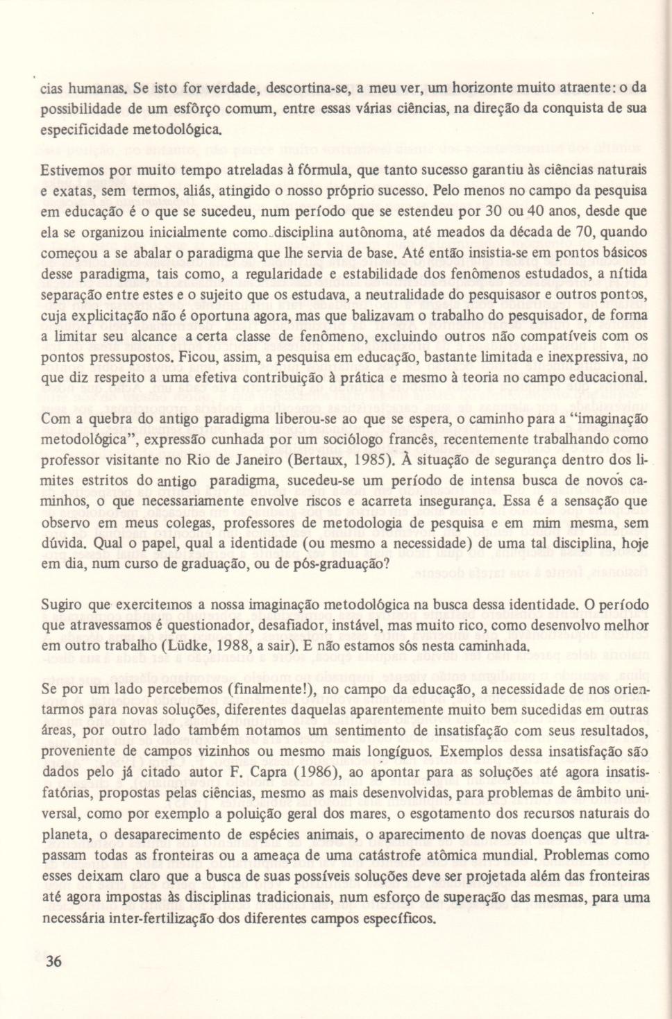 Continuação do texto da professora Menga Lüdke (EDU) no simpósio do CTCH sobre a metodologia de pesquisa, disciplina lecionada pela professora em cursos de pós-graduação em Educação.