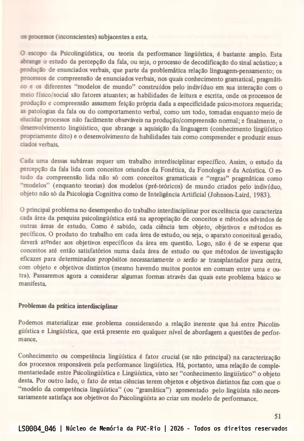 A Pesquisa em Psicolingüistica: Atividade Interdisciplinar por Definição (cont.)