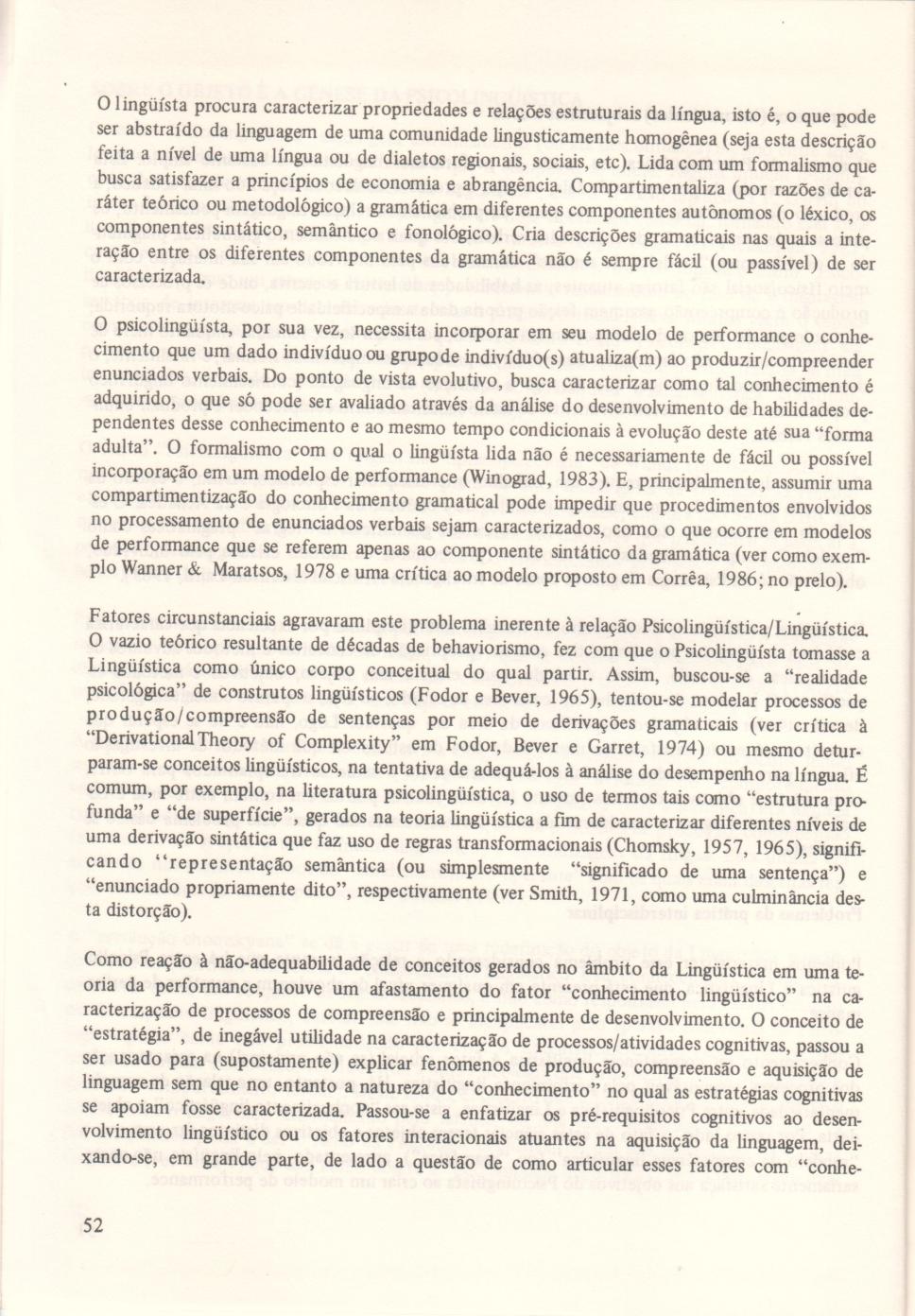 A Pesquisa em Psicolingüistica: Atividade Interdisciplinar por Definição' (cont.)