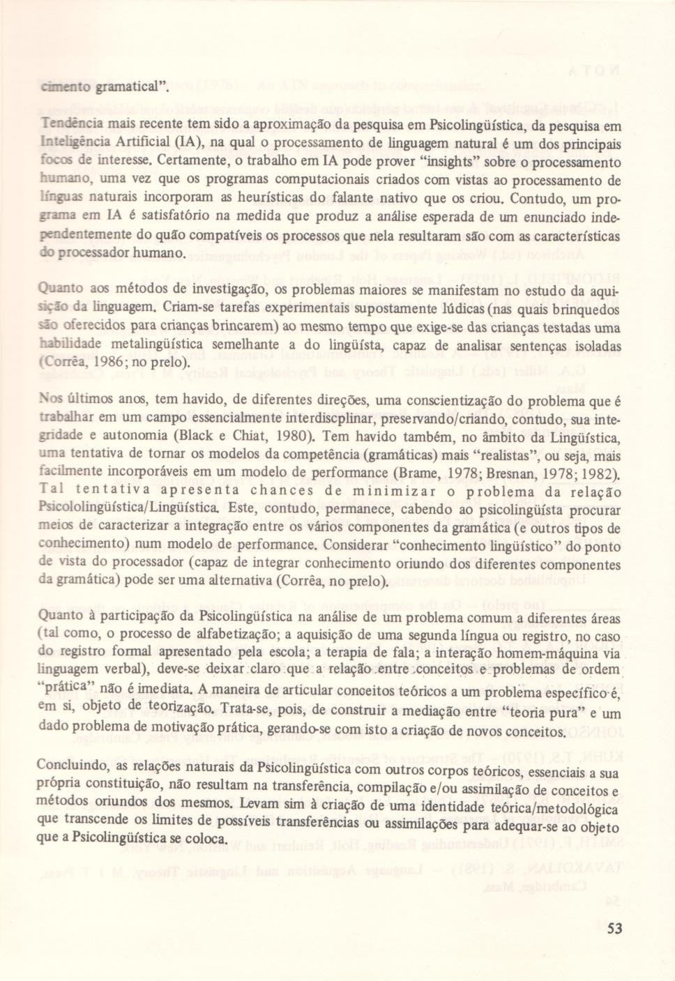 A Pesquisa em Psicolingüistica: Atividade Interdisciplinar por Definição' (cont.)