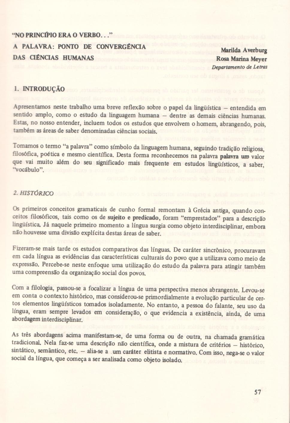 Texto das profas. Marilda Averburg e Rosa Marina Mayer do Departamento de Letras sobre o o papel da linguistica dentre as demais ciências humanas.