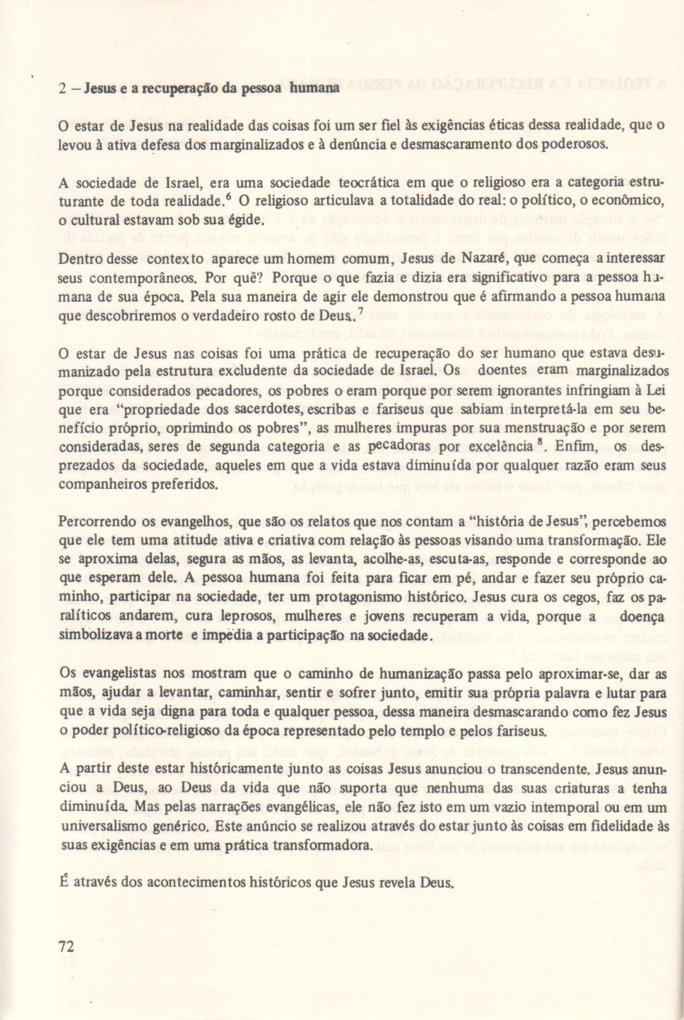 Continuação do texto da professora Ana Maria Tapedino do Departamento de Teologia onde diz que a fé tem que estar aberta aos desafios da realidade. Nesta página o subtitulo 'Jesus e a recuperação humana'.