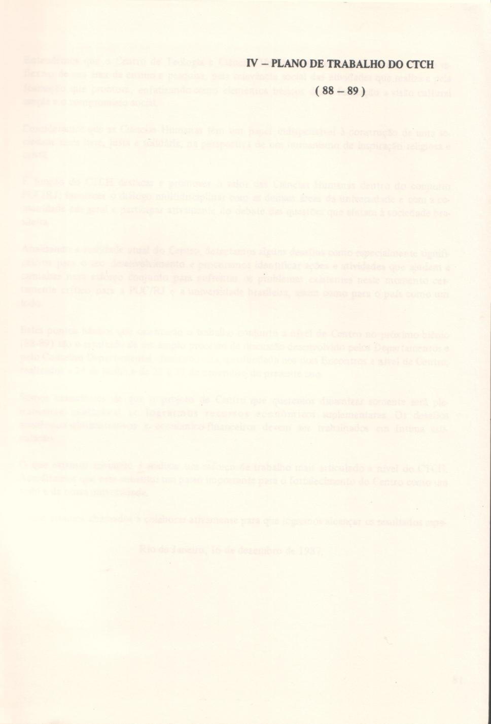 Folha de rosto do plano de trabalho do CTCH para os anos de 1988 e 1989.