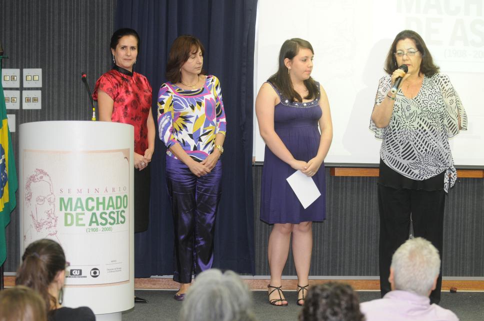 Premiação da aluna Beatriz Barbosa Libonati da Silva, do Colégio Pedro II, segunda colocada na categoria texto do concurso promovido pelo Seminário Machado de Assis (1908 - 2008).