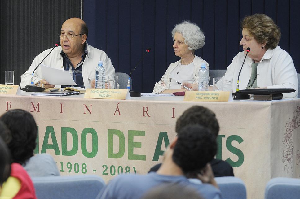 Da esq, para a dir.: prof. Renato Cordeiro Gomes,(LET) profa. Marília Rothier Cardoso (LET), profa. Margarida de Souza Neves (HIS)