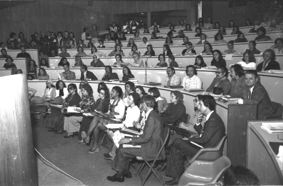 Plateia do seminário, lotada.
