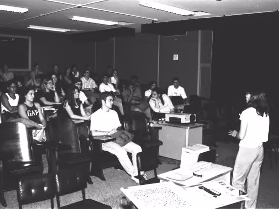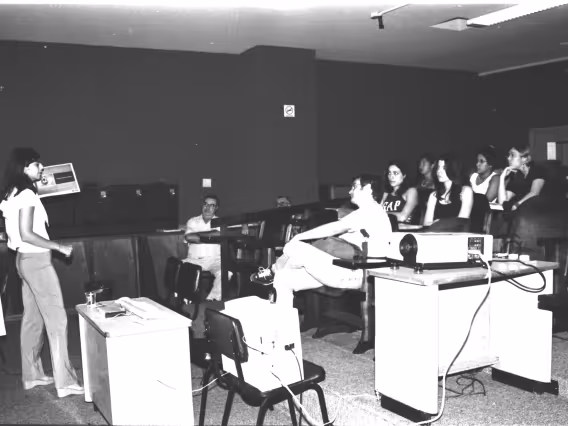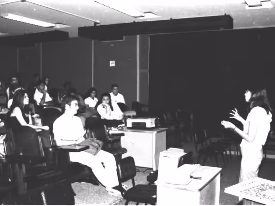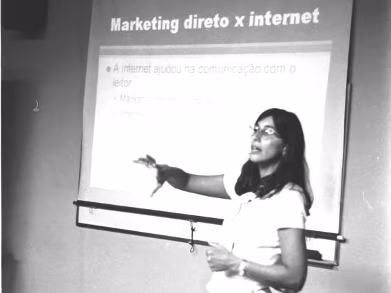 Palestra de Mônica Oliveira, diretora de marketing, na sala K506, no Edifício da Amizade, no campus da PUC-Rio. Estiveram presentes os coordenadores do Departamento de Comunicação Social Miguel Serpa Pereira e Fernado Antônio Ferreira da Silva.