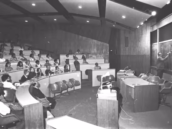 Palestra realizada no auditório do RDC sobre a auto-estrada na PUC-Rio - ls0018_005 ls0018_005 19/4/1979 Palestra sobre a auto-estrada Lagoa-Barra.