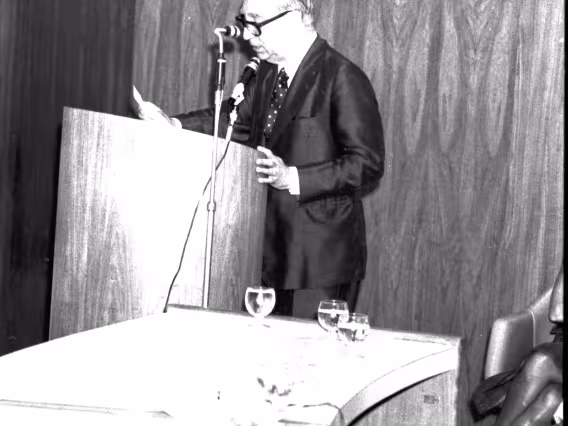 ls0027_007 | 9/3/1976 | O professor do Departamento de História, Américo Jacobina Lacombe, em Aula Inaugural do ano letivo de 1976 intitulada As origens da Universidade Católica. |