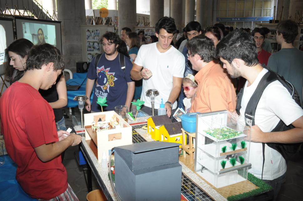 Alunos apresentam seus projetos aos visitantes.