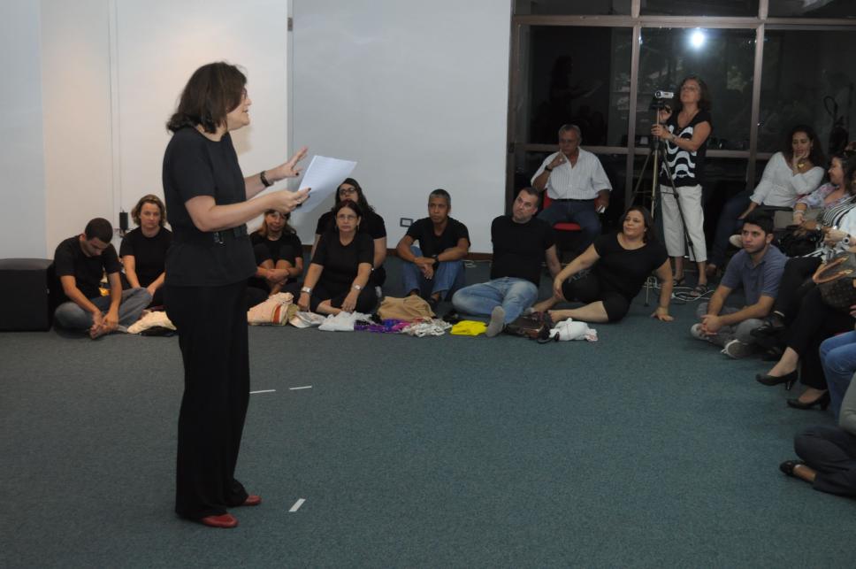 Professora Marcia Stockler discursa antes da apresentação do grupo.