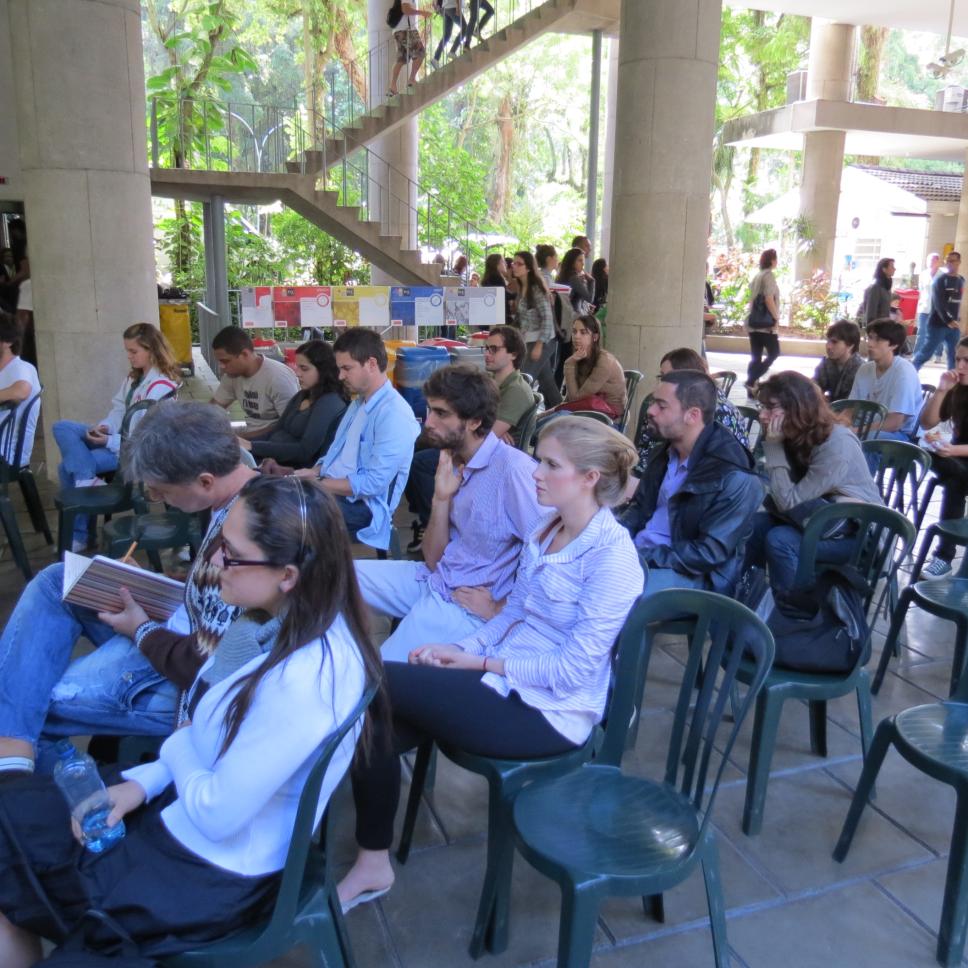 Plateia assiste a mesa sobre a Rio+20 (Conferência das Nações Unidas sobre desenvolvimento sustentável).