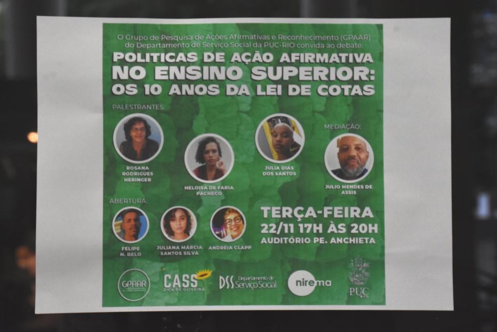 Cartaz informativo sobre a palestra dos 10 anos da Lei de Cotas.