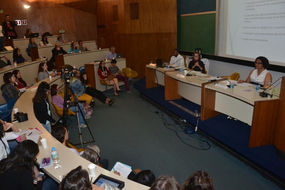 Mesa com palestrantes e plateia presente no painel 5: Contestações da heteronormatividade.