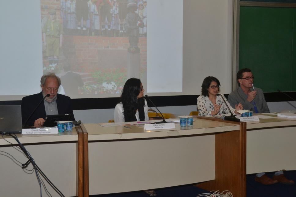 Da esquerda para direita: David Rosen (Fairleigh Dickinson University), profa. Maíra Siman Gomes, (IRI), Paula Drumond (Graduate Institut of Int´l and Development Studies), n.i