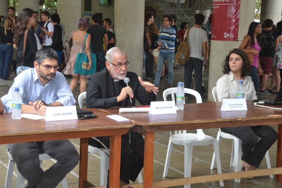 Da esq. para dir.: Sami Armed, pe. Marcelo Torres, n.i