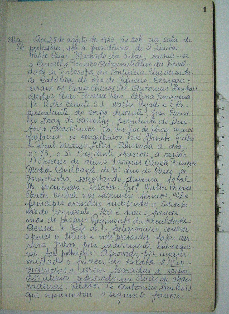 Atas do Conselho Técnico Administrativo da Faculdade de Filosofia da PUC 1963 - 1970 - p.01