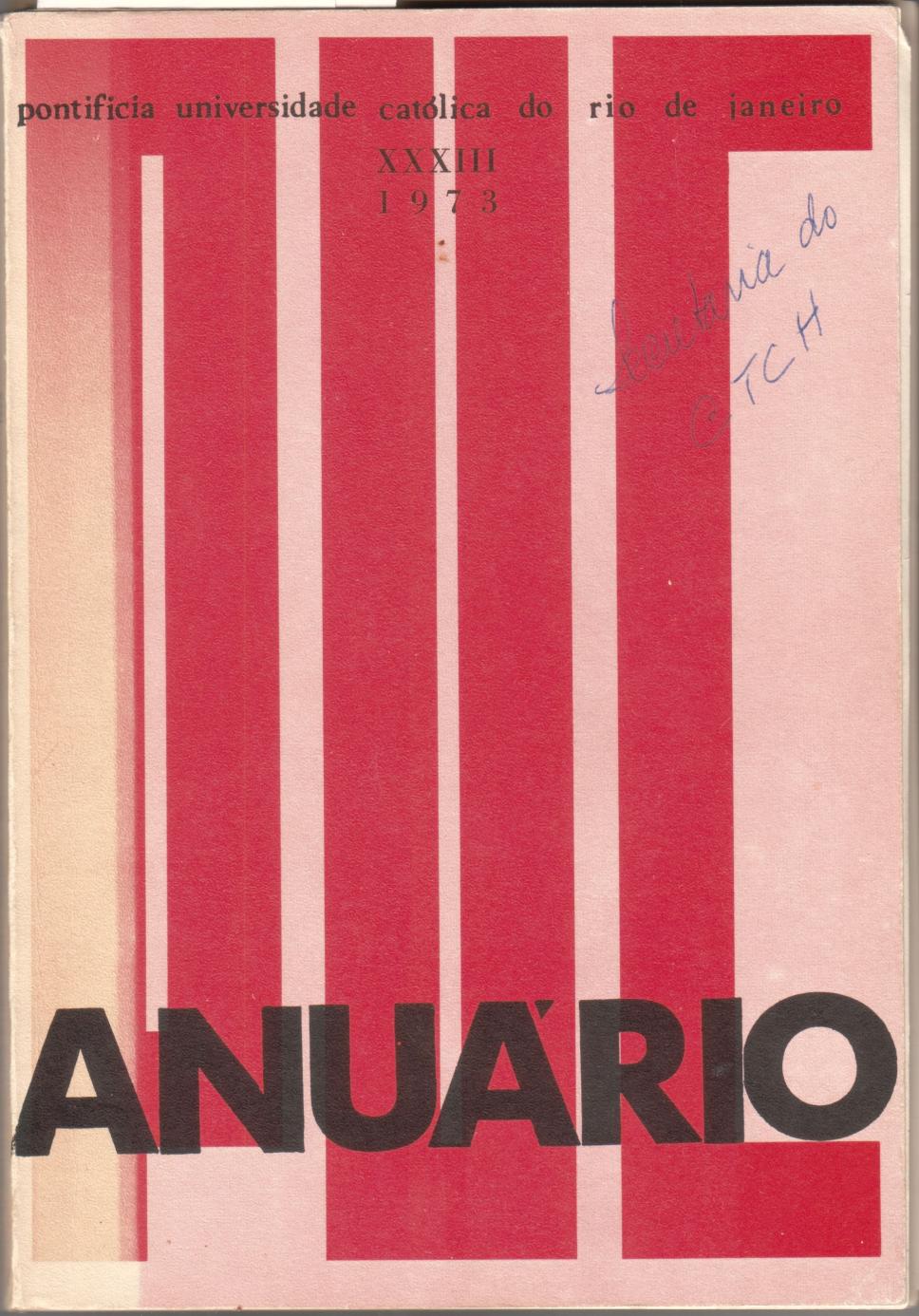 Coleção Anuário da Pontifícia Universidade Católica do Rio de Janeiro 1973 Código exclusivo ml0005_001 Data da criação Ano 1974 Data de criação Ter, 01/01/1974 - 12:00 Natureza do documento imagem Identificação Original Anuário PUC-Rio 1973 - capa Descrição capa