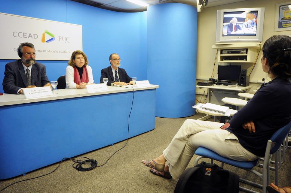 prof. Paulo Fernando Carneiro de Andrade (decano do CTCH), profa. Monica Herz (IRI), prof. Paul Schweitzer (MAT)