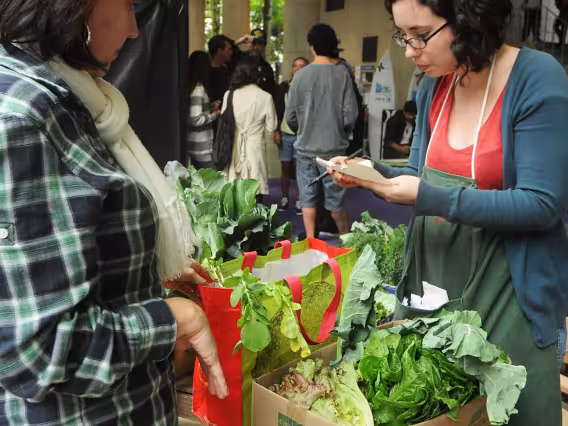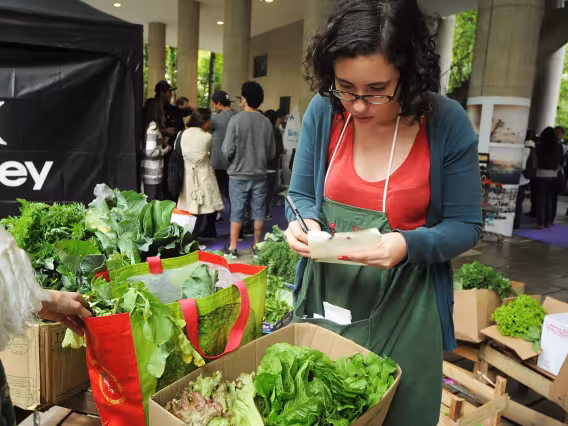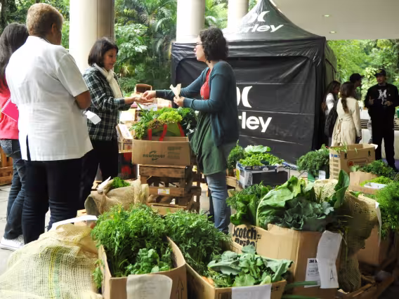 Flagrante da venda de hortaliças orgânicas no campus da PUC-Rio, que agora permite a compra on-line.