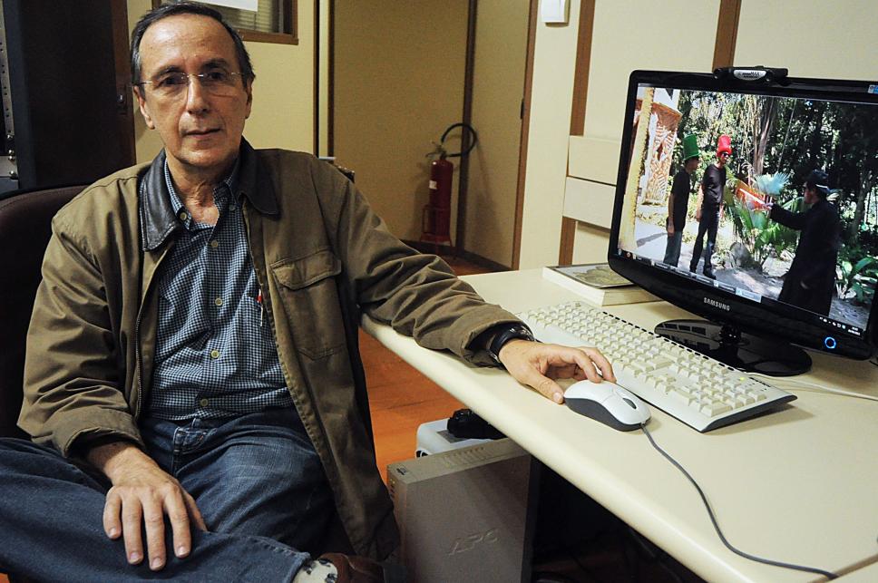 O Professor Bruno Feijó, do Departamento de Informática no momento da entrevista dada ao Jornal da PUC sobre o Laboratório de Efeitos Visuais da PUC-Rio, VisionLab.